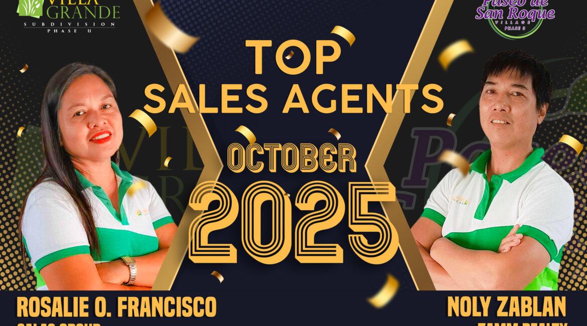Top Sales Agents for the month of October 2025Villa Grande Subdivision Phase 2 - Rosalie Francisco (Salas Group)Paseo de San Roque Village Phase 3 - Noly...